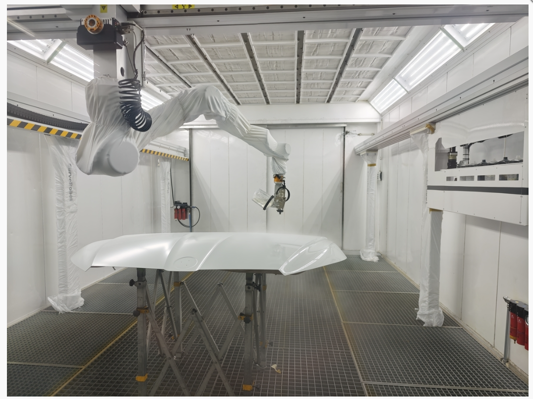 Once the spraying process begins, the robotic arm automatically docks the gravity feed cup and autonomously changes tools, such as the varnish gun and primer gun. The nine-axis system allows it to move in tight spaces and spray vehicles from all angles: it uses 3D vision and artificial intelligence to plan the spraying process and simulate the spraying movements of our painters.As a new colleague, a fully automatic paint shop started here a few weeks ago. And in the future, this new colleague will be named.